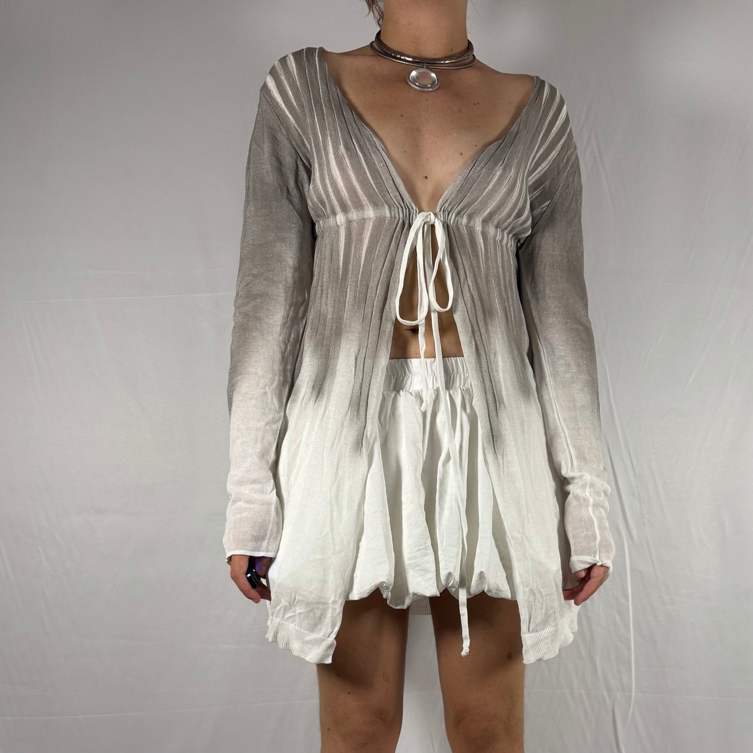 Y2K Sarah Pacini Knit Cardigan Accordion Ombre Knitwear Gathered Minimalist Coquette Umpire Waist Clean Girl Top