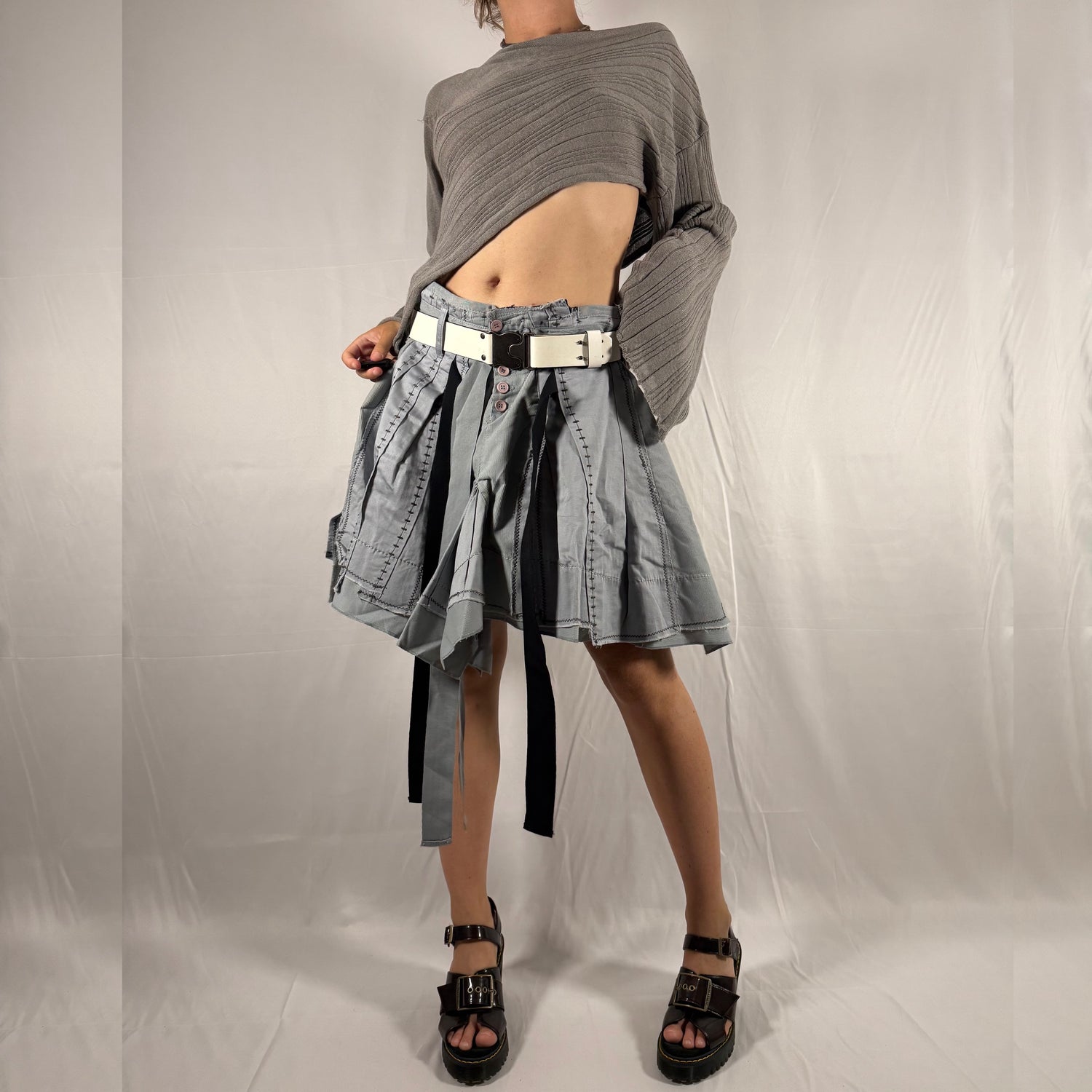 Marithe Francois Girbaud Deconstructed Skirt Y2K Apocalypse Gorpcore Whimsigoth Contrast Stitch Patchwork Asymmetrical Layered Ruffle Runway Skirt