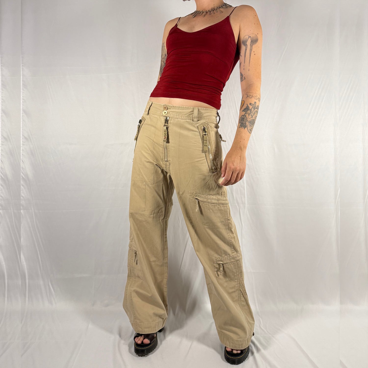 Vintage Diesel Cargo Pants Y2K Gorpcore Techwear Utility Low Rise Straight Leg Wide Neutral Workwear Pants